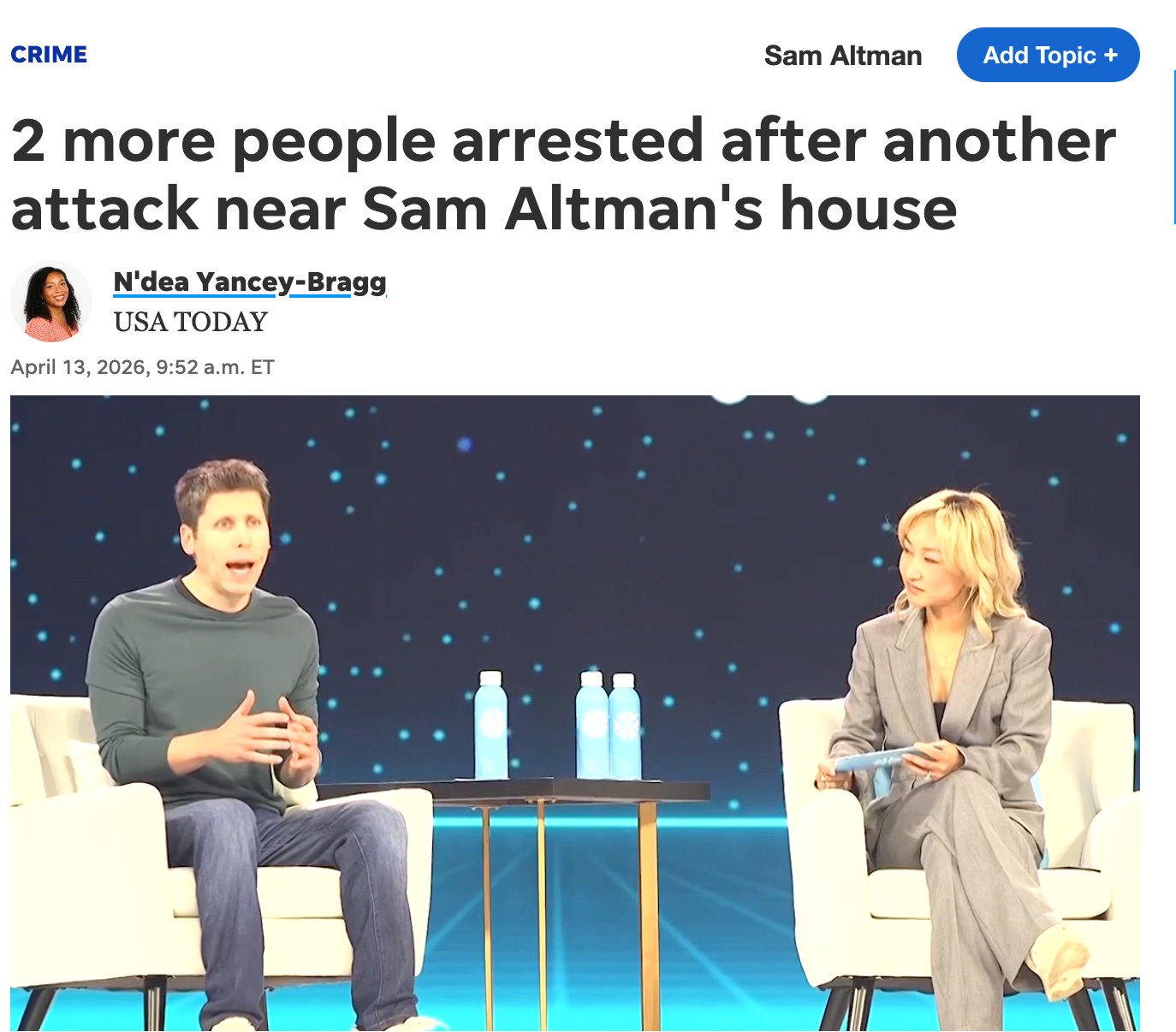 The next day, a second attack occurred at Altman’s house, this time a shooting: